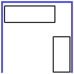 Picture 2 is a different setup, using two tables but placing one on the side and one on the back, creating an open area in the middle inviting people to step inside the booth to see what we have to offer. The one on the side is the 4' table I'm bringing, leaving some open room at the back for someone to sit. The 4' table has the demo computers on it, and the table at the back has our books and CDs.